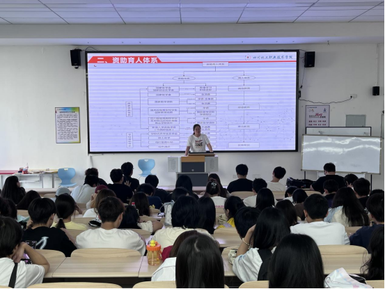 讲座现场,邹老师首先围绕学校资助中心展开介绍。学校资助中心自成立以来,始终秉持“立德树人,资助育人”的核心工作理念,坚定不移地践行“不让一个学生因家庭经济困难而失学”的庄严承诺。为此,资助中心建立了一套科学完备的资助机制,从多个维度为家庭经济困难学生提供坚实保障。