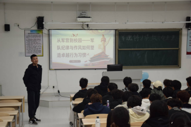 为积极响应校园文明礼貌月的号召,进一步弘扬军人精神,培养学生良好的行为习惯和卓越品质,2025年3月14日,应用化工学院在勤学楼11A303举办了一场以 “军魂铸习惯,卓越引未来” 为主题的专题讲座。此次讲座旨在通过对军人优良行为习惯的深入探讨,引导大家培养卓越的个人品质,开启更加辉煌的未来。